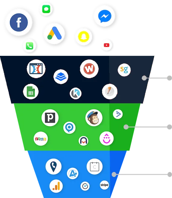 Build full-featured Websites, and Sales Funnel with custom menus. Guide your leads and customers through the sales process from lead to a sale.