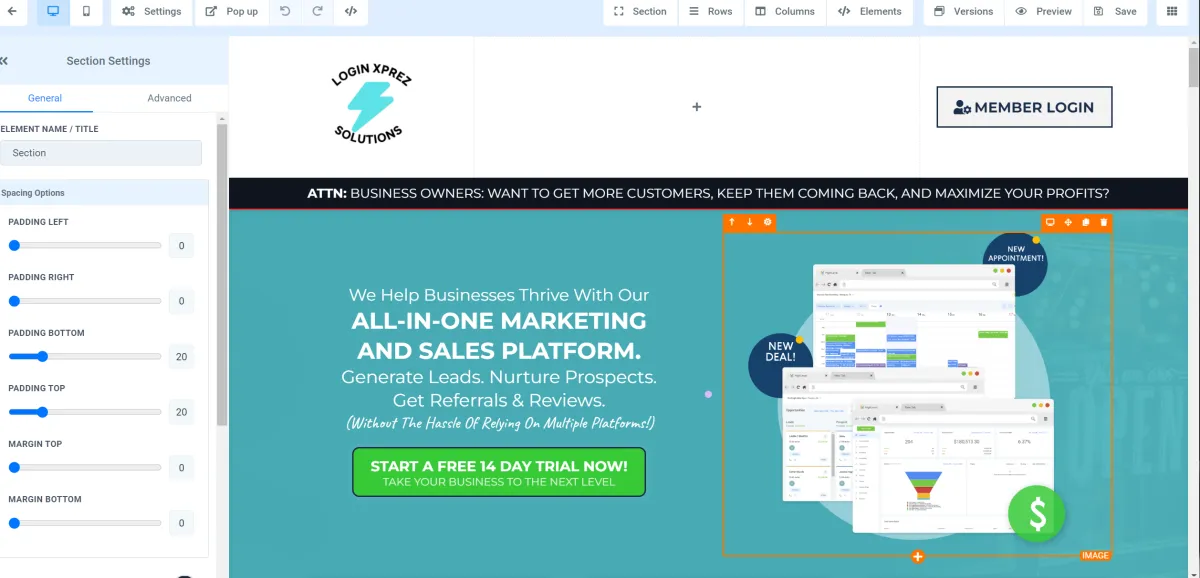 Our easy drag and drop web and funnel builder allows you to create full-featured websites with custom menus fast. This will help you to Stop relying on web designers and programmers and do it instantly.