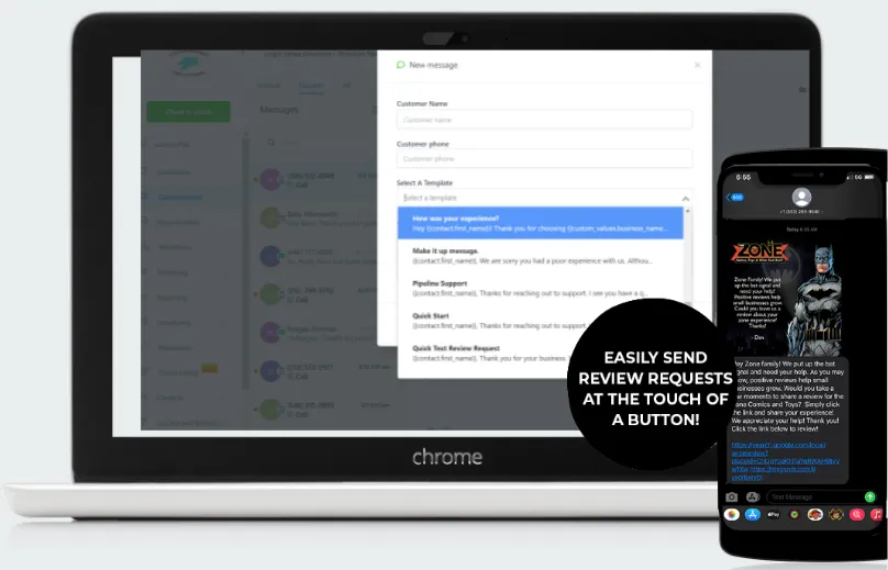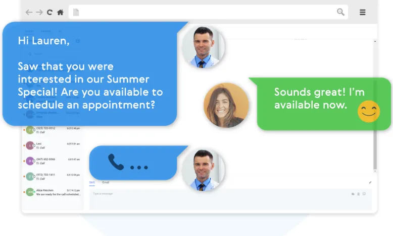 Connect with prospects and customers through our 2-way communication channel wherever you are! Send texts, emails, FB messages, GMB messages, and more!